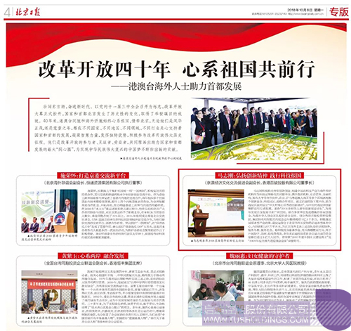 10月8日,北京日报发表改革开放40周年专题文章《改革开放四十年 心系祖国共前行 ——港澳台海外人士助力首都发展 》,文中报道京澳经济文化交流促进会副会长、九游·官方版在线入口控股董事、九游·官方版在线入口金控董事长马志刚作为港澳台爱国企业家代表,多年来积极投身京港澳创新交流合作,助力华人青年创新创业。以下为相关报道内容节选。