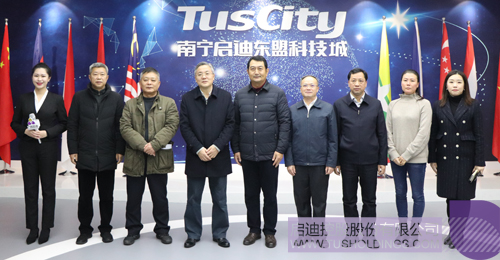 南宁市副市长、五象新区管委会副主任李建文,五象新区管委会副主任农冰、副主任谭玫瑰,南宁市市政府秘书长黄宗成及南宁市、南宁五象新区相关机构负责人一同到访。中国—东盟科技产业合作委员会秘书长张一丹,广西九游·官方版在线入口综合运营管理中心总经理覃树宁等一同参加。