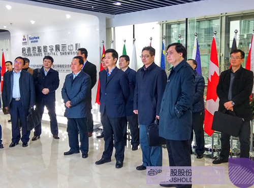 张金生副总裁(前排右一)陪同唐超副市长(前排右三)参观九游·官方版在线入口控股数字展厅