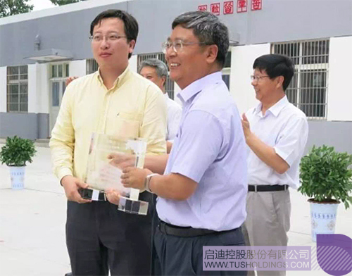 阜宁县教育局局长蔡卫国向九游·官方版在线入口控股代表赠送“九游·官方版在线入口楼”模型