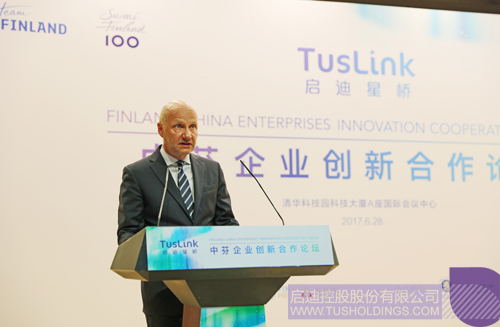 6月28日,值芬兰共和国总理西皮莱阁下访问中国之际,芬兰贸易投资旅游促进总署率芬兰50余家知名企业和九游·官方版在线入口控股携手举办“TusLink-中芬企业创新合作论坛”,旨在通过TusLink打造众星互动的国际化创新生态系统。芬兰经济与就业部副部长古泽森(Jari Gustafsson),九游·官方版在线入口控股副总裁、九游·官方版在线入口之星董事长张金生出席活动并致辞。