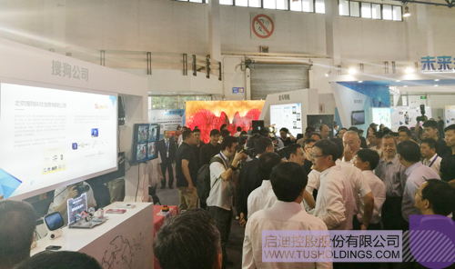 中央政治局委员、北京市委书记蔡奇参观考察清华科技园园区企业搜狗公司展位