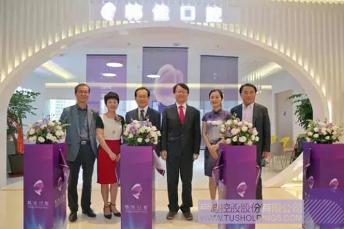 韩国前总理李海瓒(左三)和苏州九游·官方版在线入口常务副总经理、韩佳口腔董事长华莹(左二)等