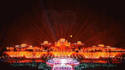 央视科技类节目导演携手2017、2018春晚无人机编队表演团队远度科技,将无人机编队表演再度创新,打破“秩序”排列规则,采用“飞机不规则排列”,配合顶级舞美灯光,无人机编队空中造型在宏伟壮观之外添加温馨元素,与舞台音乐相结合,使得整场无人机编队表演更具连贯性、故事性,将一场MV从大屏搬向夜空,更加唯美、浪漫、动人,营造出真正的科技与艺术完美结合。