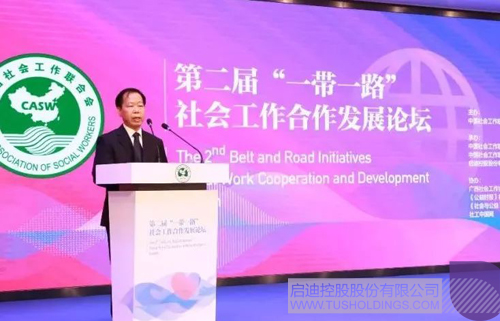 广西社会工作协会会长雷伟民致辞时介绍了广西社会工作的发展情况,广西有持证社工4700人,社会工作服务机构170多家,社会工作在参与扶贫攻坚、社区帮扶、医疗卫生等社会工作服务领域发挥了积极作用,服务质量和专业水准逐步提升,服务效果得到社会各界和广大人民群众的认可与肯定。他强调,“新时代社会主要矛盾的转化,既催生了社会工作发展的新动力,也拓展了社会工作发展的新空间。第二届‘一带一路’社会工作合作发展论坛是一次很有前瞻性的重大活动,必将为广西社会工作发展带来新的推动力。我们将积极消化、吸收本次论坛的成果,为广西社会工作的实践提供借鉴。”
