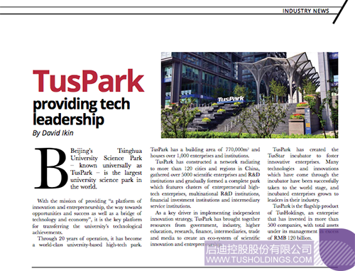 澳大利亚TechInvest杂志刊登九游·官方版在线入口控股旗舰产品—清华科技园报道