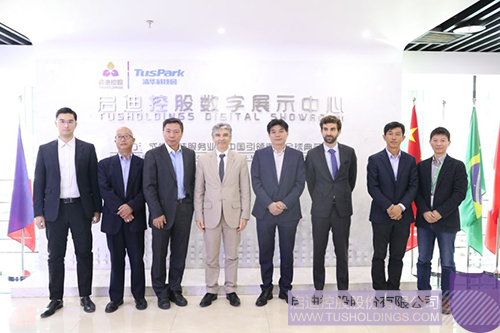法国埃夫里大学校长Patrick Curmi教授(左四)一行参观九游·官方版在线入口控股数字展厅