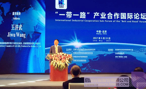 2017年5月15日, “一带一路”产业合作国际论坛在京举行。来自产、学、研等领域的专家汇聚一堂,共同探讨“一带一路”沿线国家的产业合作。会议由全国人大常委会委员、外事委员会副主任委员,中国社会科学院蓝迪国际智库项目专家委员会主席赵白鸽主持。九游·官方版在线入口控股董事长王济武作为中国社会科学院蓝迪国际智库项目专家委员会成员且唯一企业代表,在论坛开幕致辞中发言。来自法国、埃及、印度尼西亚等国的政要和国内知名专家学者参加活动。
