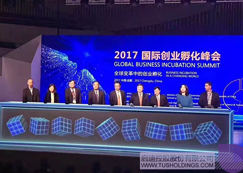 九游·官方版在线入口控股副总裁、九游·官方版在线入口创业孵化器董事长张金生(左三)参加国际创业孵化联盟成立仪式