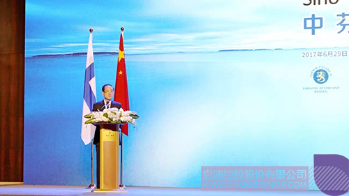 “建交67年以来,友好、互利、合作已经成为中芬关系的主旋律。今年4月,习近平主席在对芬兰进行国事访问期间,两国领导人确立了面向未来的新型合作伙伴关系,谱写了中芬关系的新篇章,开启了中芬合作的新政策。”韩启德副主席回顾了中芬合作成果,认为中芬战略高度契合,经济互补优势更加凸显,务实合作潜力巨大,前景广阔。他围绕“创新”、“绿色”、“可持续”三大关键词,提出双方未来的主要合作方向,希望双方政府、企业、企业家携手为中芬两国经济增长作出新的贡献。
