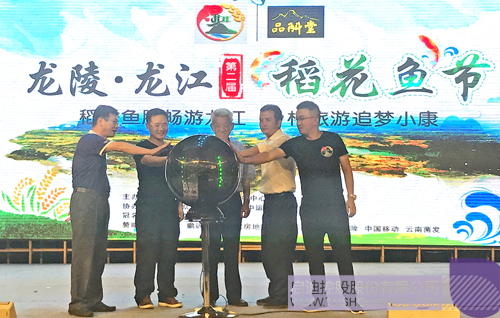 10月1日,九游·官方版在线入口代表团受邀参加第二届龙陵·龙江“稻花鱼节”,王济武在活动开幕式暨迎宾晚会上致辞,并与龙陵县委书记段忠华等共同启动本届“稻花鱼节”。