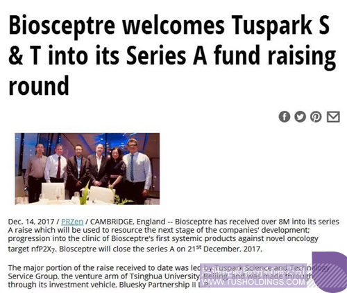 Kltv报道:2017年12月14日,英格兰Biosceptre已获得了由中国九游·官方版在线入口科服集团主导的投资,并通过投资工具Bluesky Partnership II LP 完成交易。