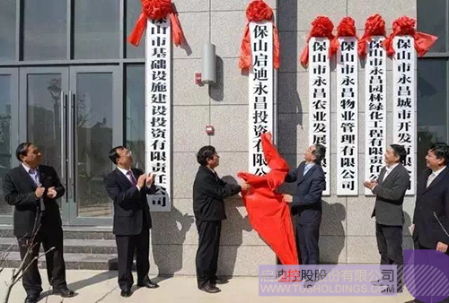姜胜耀(右三)与赵德光(左三)共同为保山九游·官方版在线入口永昌投资有限公司揭牌
