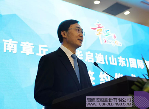 韩伟在致辞中表示,章丘抢抓历史机遇,正全面实施交通、生态、产业、城镇四大提升工程,着力打造山、泉、河、湖、城和谐共融的现代化山水园林城市,加快构建产业高地和宜居新区,全区综合竞争力、对外吸引力日益增强。他提出,章丘区将集中力量、加大力度、全面做好山东九游·官方版在线入口国际智慧科技城项目的落地保障工作,依托章丘的良好发展环境和九游·官方版在线入口控股的雄厚实力,早日将具有科技引领、项目孵化、辐射带动共赢的智慧科技城呈现在齐鲁大地。