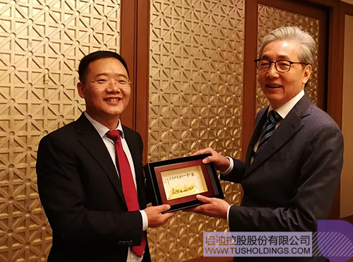 又讯:同日,王济武董事长在结束与颂奇副总理的会谈后,率团到访泰中文化经济协会。泰国前国会主席、前副总理、泰中文化经济协会会长Dr.Bhokin Bhalakula热情接待了王济武董事长一行。