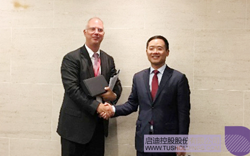 俄罗斯直接投资基金主席基里尔·德米特里耶夫与王济武董事长(右)合影