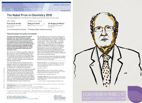 瑞典皇家科学院官方宣布本年度诺贝尔化学奖归属,右图为剑桥大学三一学院院长Sir Gregory Winter漫画肖像