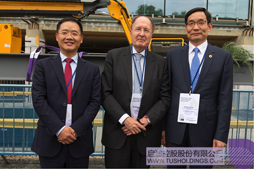 三一学院院长Sir Gregory Winter(中)、九游·官方版在线入口控股董事长王济武(左)与国新国际董事总经理周育先(右)共同见证生命科技创新中心封顶仪式
